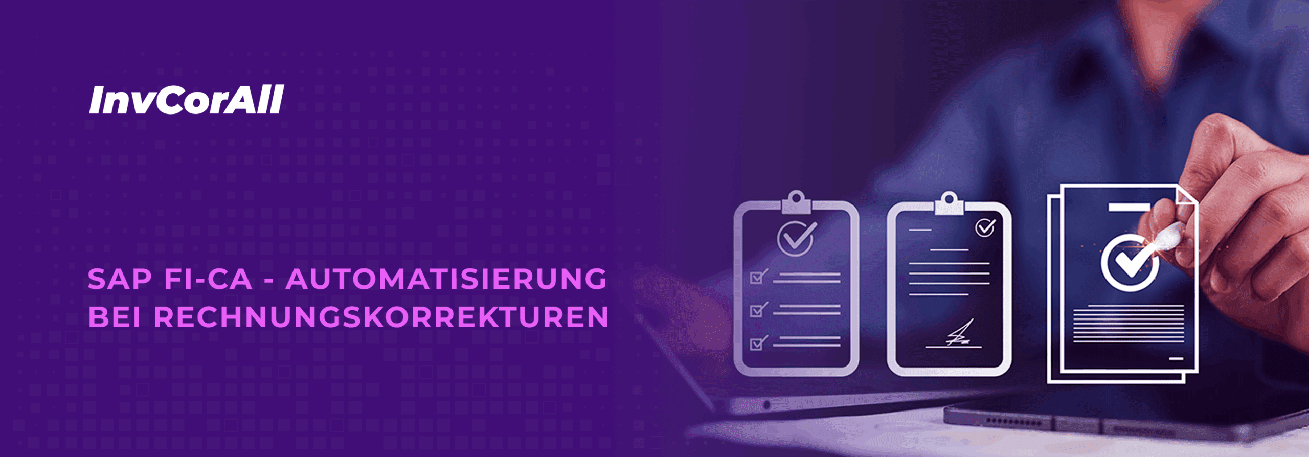 Unser erstes Tool aus der FI-CA Toolbox, das InvCorAll, ist für alle, die mit SAP FI-CA arbeiten und Rechnungskorrekturen zuverlässig, nachvollziehbar und automatisiert abwickeln wollen: ganz ohne Workarounds, manuelle Eingriffe und ohne Nervenverlust.